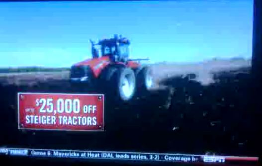 I was watching ESPN SportsCenter on Sunday catching up on the highlights and I noticed a commercial playing during one of the breaks. It is for a company called Case IH which sells farming heavy equipment (tractors, combines, etc.). The commercial is well produced — beautifully filmed wide shots, soulful voiceover, rich music soundtrack — clearly, little expense was spared. You can see my camera phone video capture of the commercial here (sorry, not sure why it did not capture the audio). The video is also currently playing on their USA website home page at www.caseih.com.
