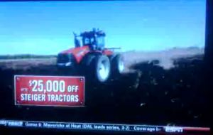 Maybe the ESPN commercial was “added value” negotiated into the plan for no additional charge along with a more targeted cable buy and media plan. But if so, I would have gone with one of their more branding-centric ads, not one promoting discounts (example of Case IH branding-centric ad here). Promoting discounts in a broad-based medium like TV just conveys the impression that you are selling a commodity product, and that cheapens your brand. Better to adopt a message that your product delivers superior *value* vs. the competition (something like: “feature-for-feature superior to Caterpillar, but priced lower to help today’s farmers weather the current economic turmoil”).