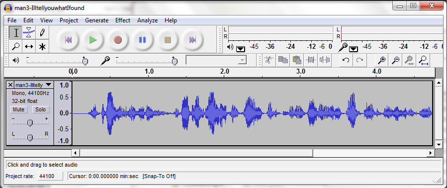 - Then I recorded the man’s voicover and dropped the audio clips into MovieMaker.(Again, I recorded each vocal outburst as a separate file and I had around 15 little .WAV files for the man’s voiceover.)