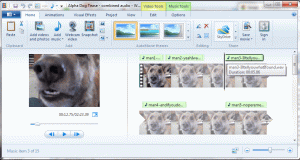 - Next I output the new video with just the dog’s voiceover. Why did I do this? Because MovieMaker does not have multi-track capabilities for audio, so any overlapping of the dog’s voiceover with the man’s voiceover could not be accommodated. So I output the video with just the dog’s voiceover and then I started a new MovieMaker project with that interim video to add the man’s voiceover.